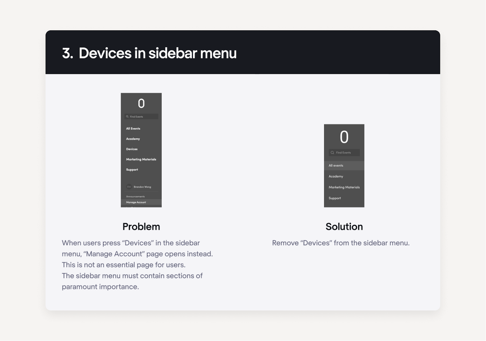As a result, we prepare a UX audit report. In our work, it is typically a presentation of all UX design issues our designers found in the product, suggesting a fix to each of them.