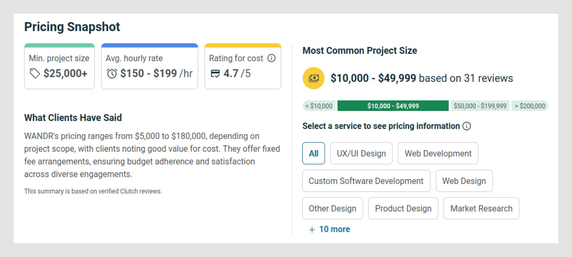 - Pricing reflects full-service delivery, from strategy and design to development.