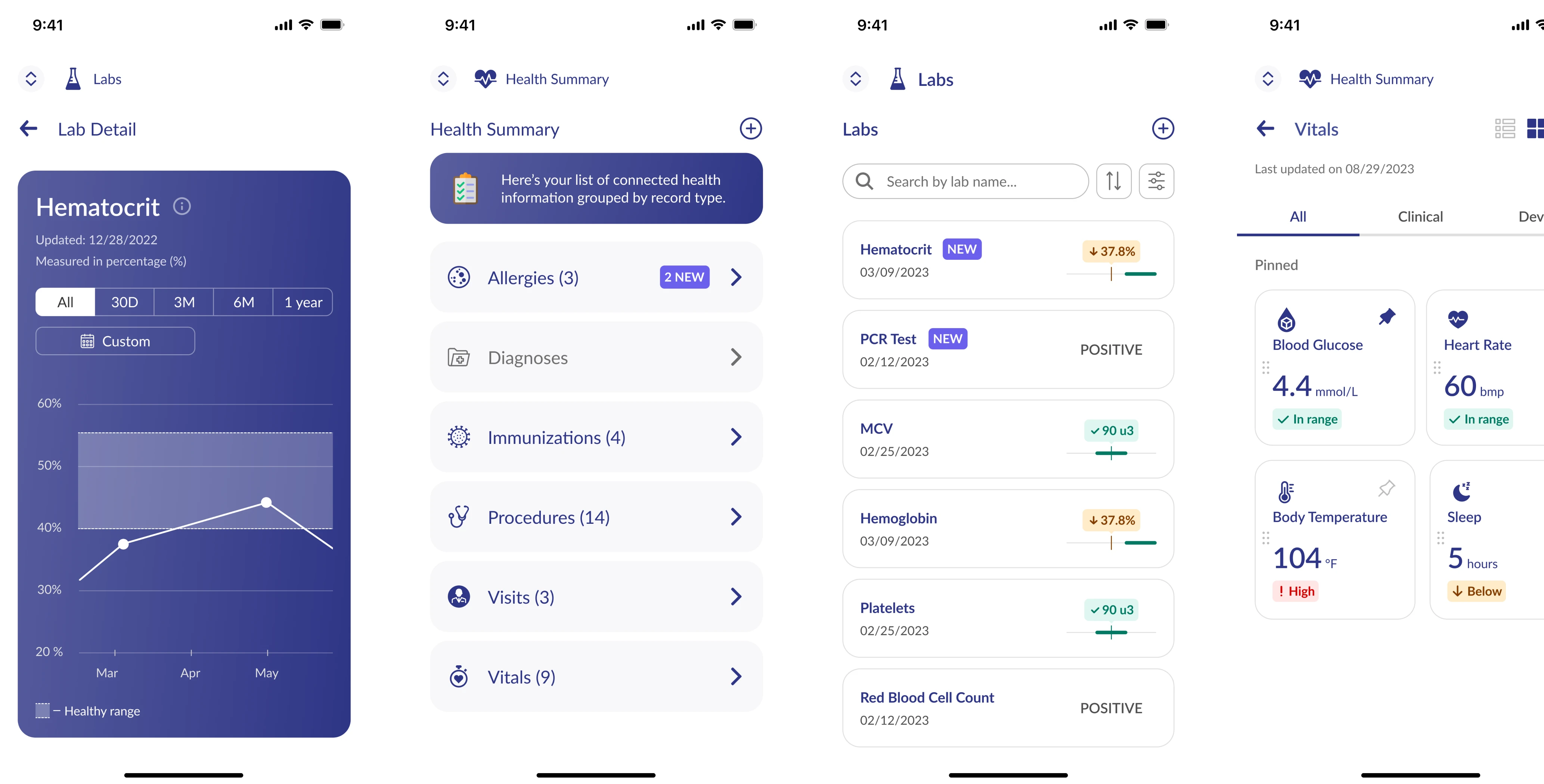The Labs page contains all user’s lab test results, providing updates on new results and keeping a history of previous ones. This was the redesign task and our goal was to improve Labs’ effectiveness for health monitoring.