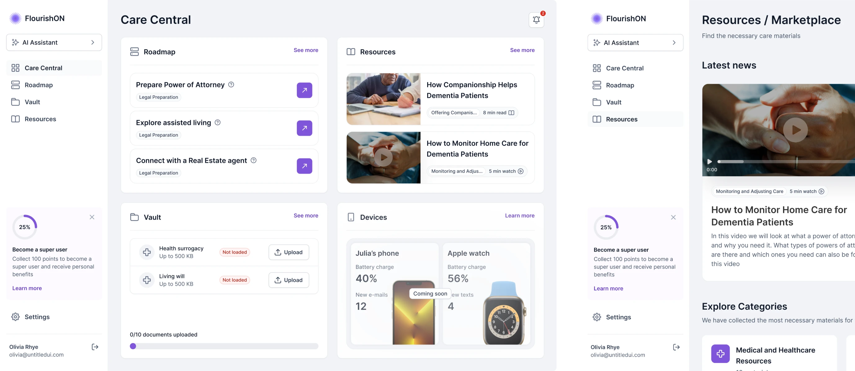 That insight became FlourishON, a digital platform designed to help families manage the complex realities of cognitive decline while staying calm, connected, and in control.