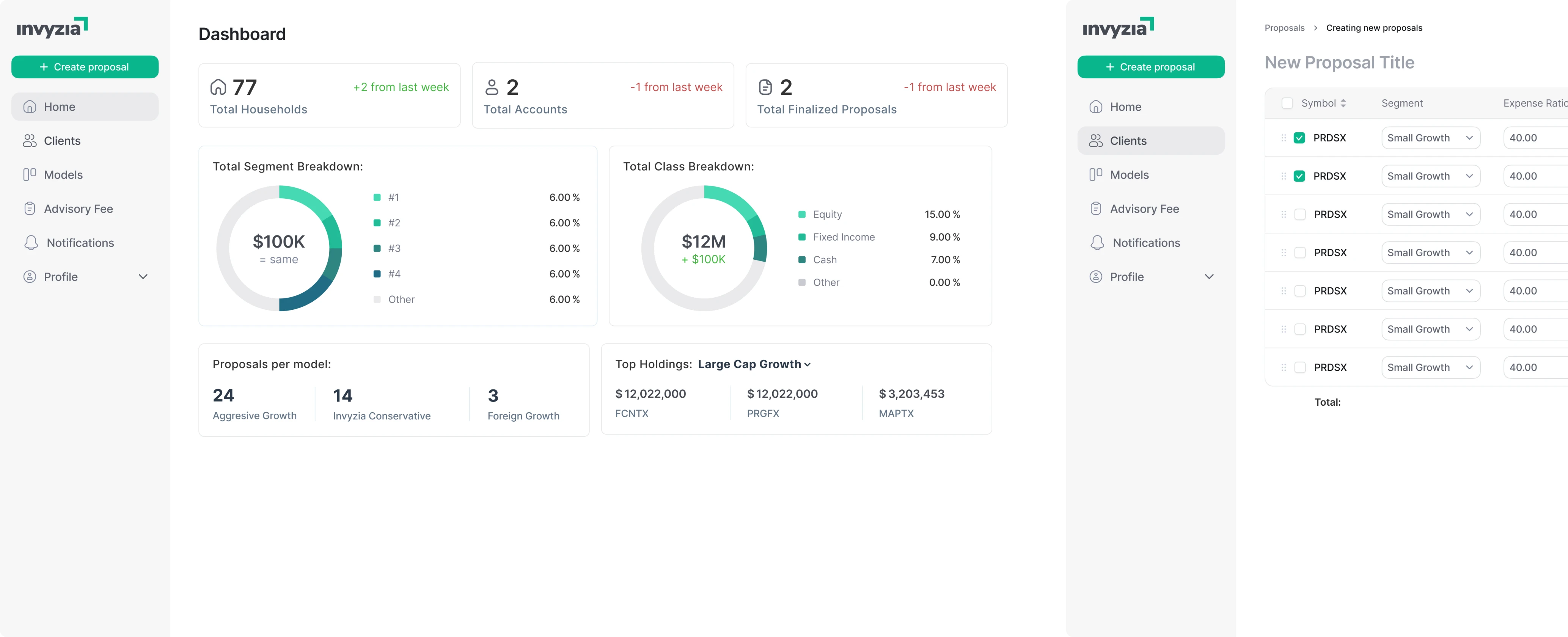 Invyzia Solutions is a niche, straightforward, and simple platform for financial proposals. The platform gathers all financial data. With its help, advisors can quickly generate proposals, show their customers how they are allocated today, and make informed decisions about what their allocation will look like in the future.