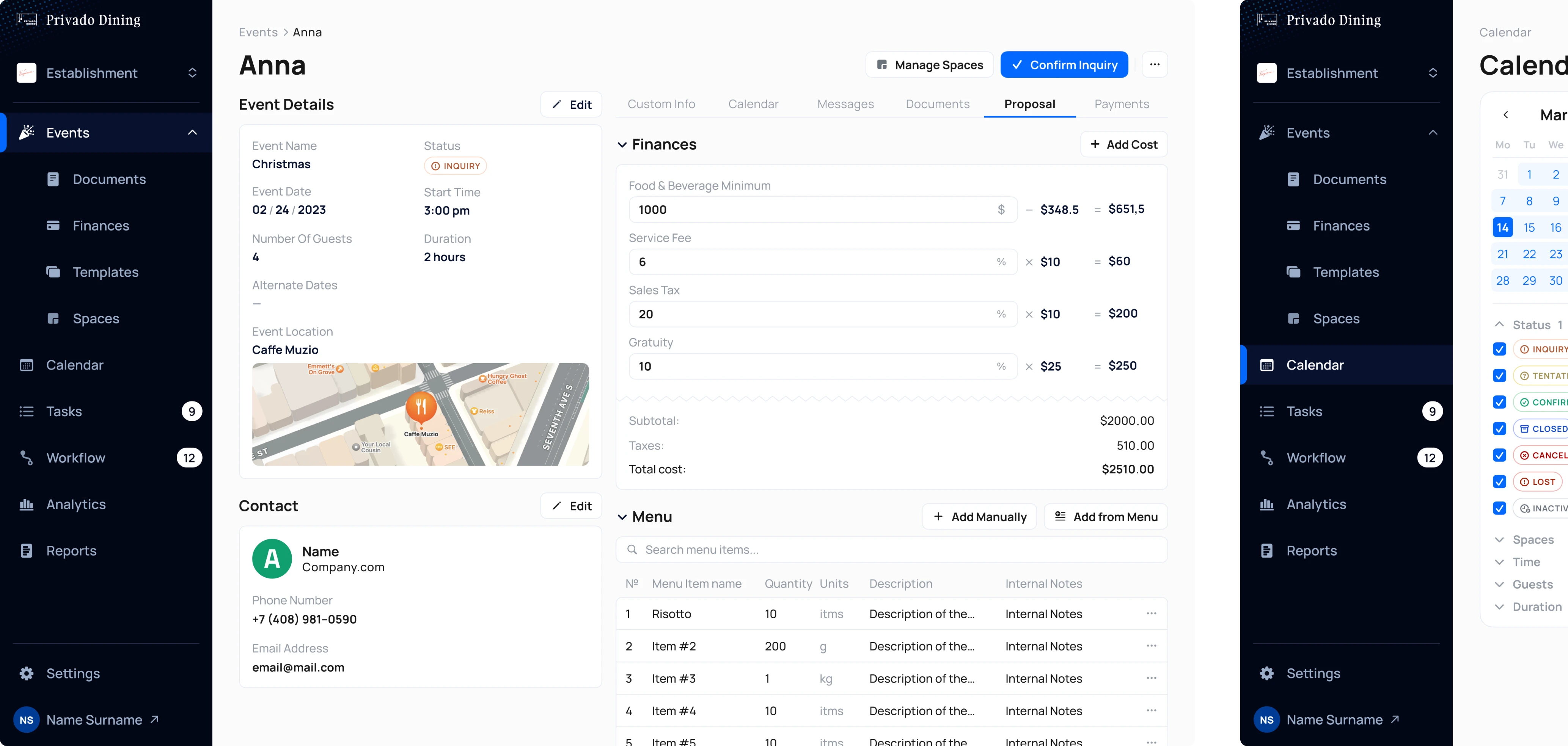 Privado Dining is a SaaS platform for private dining event management for restaurants and related businesses. Specifically, they were trying to build enterprise software that allows restaurant owners and event directors to manage large party events with ease.