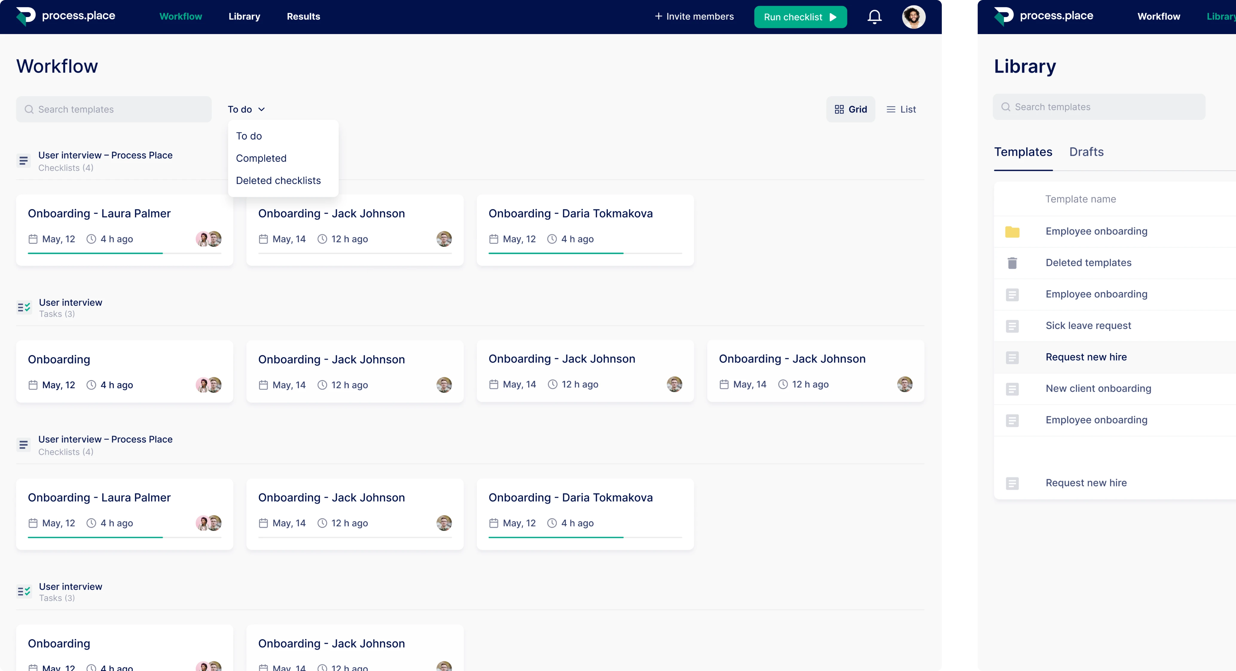 With all that questions in mind, we designed a prototype of a workflow management tool created to clear up messy processes. The name of the tool is Process Place.