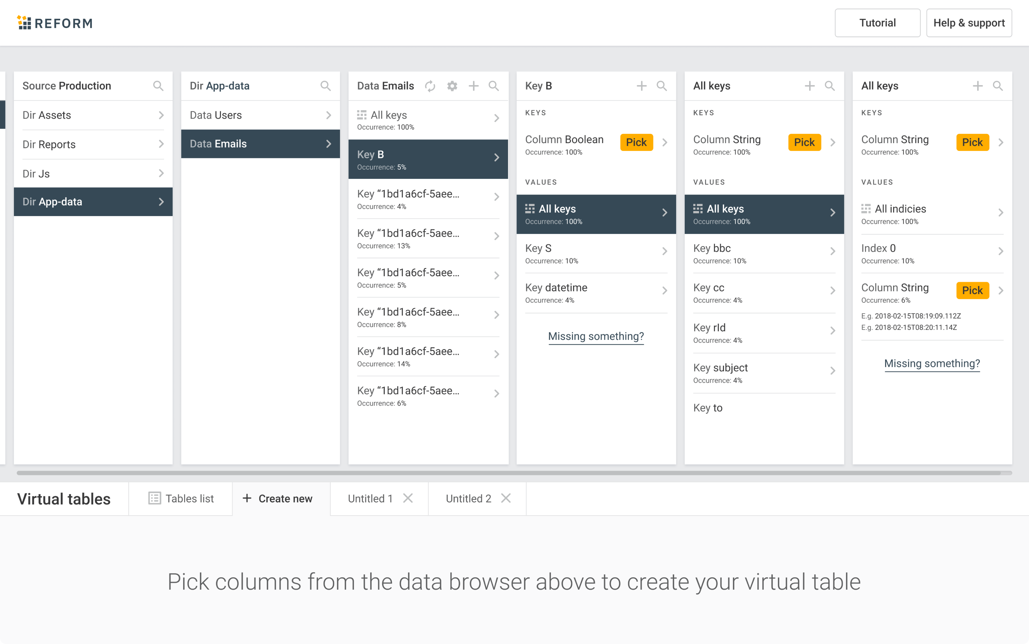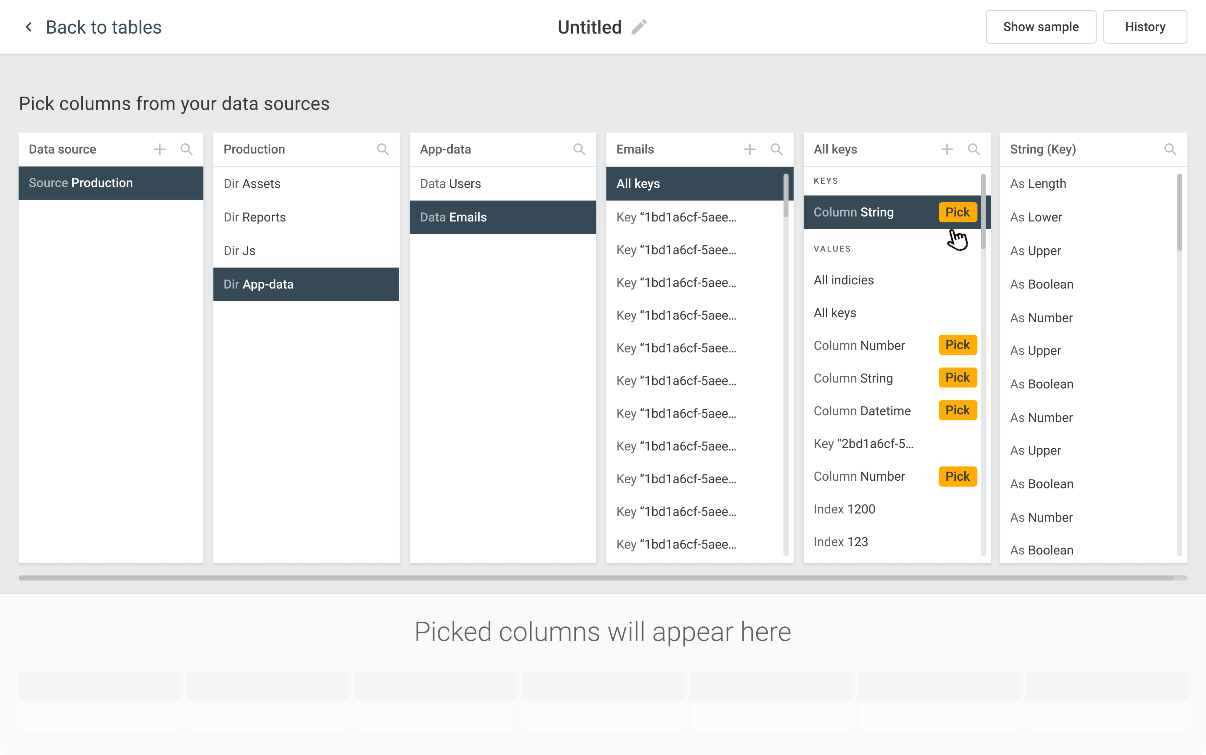 You can pick out the keys you need and the system will prepare analytics-ready tables with all the information related to these keys.