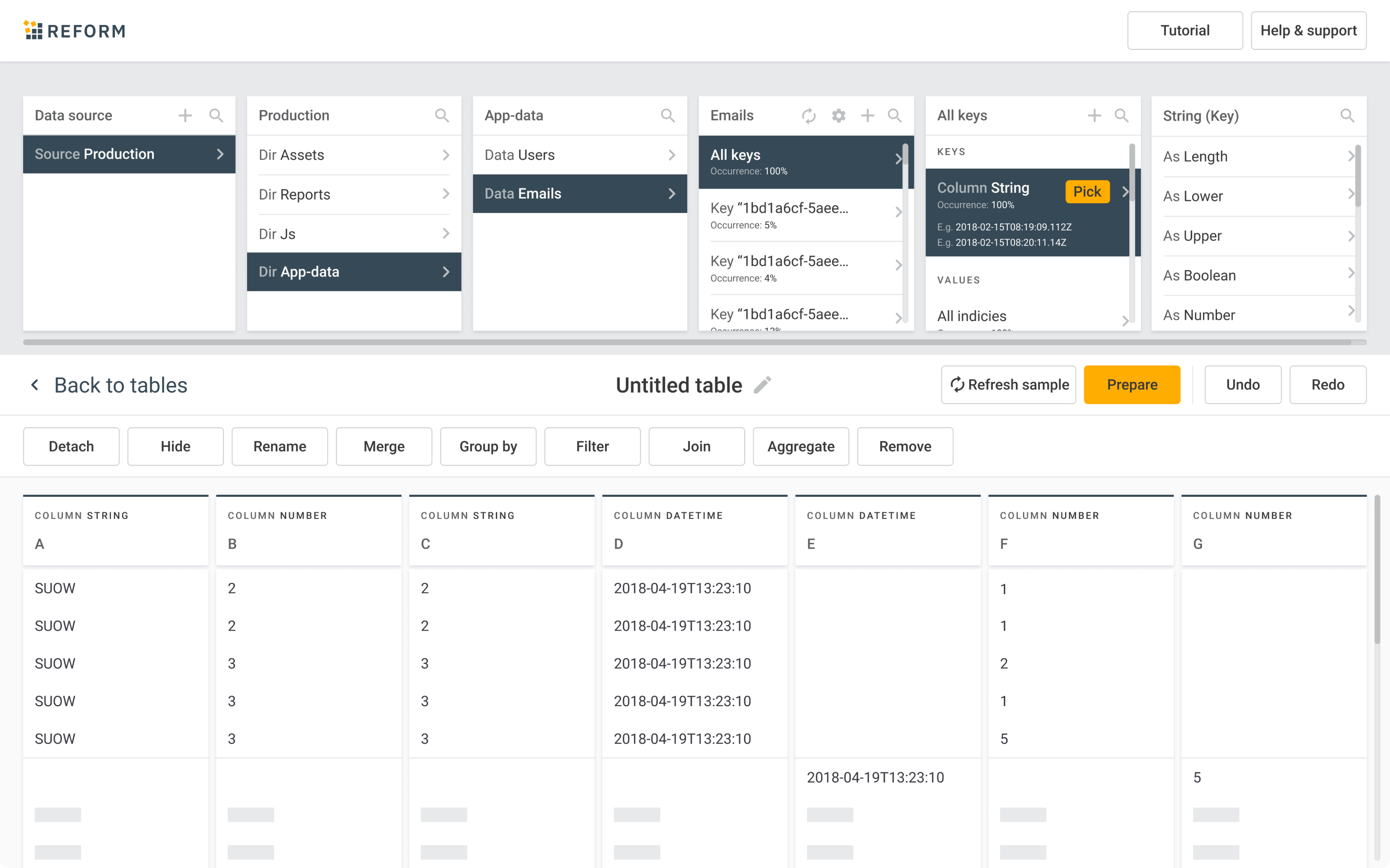 You can apply different functions to manage data in the table. Merge, rename, group, filter – we designed multiple micro-interactions to make the process of data modification easy and intuitive.