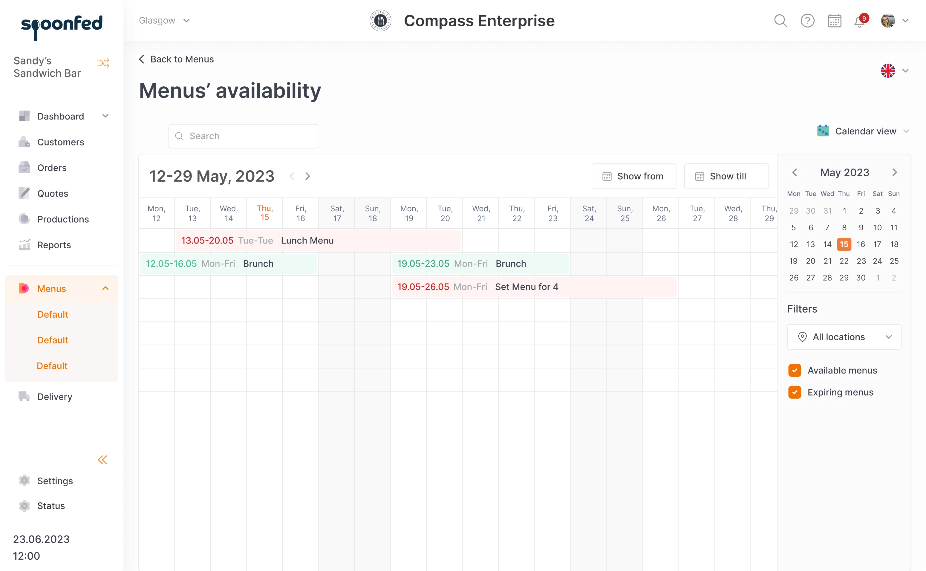 Calendar view is a simple visualization that allows restaurants to control the menu’s availability, depending on the day and time. Just to make sure that nobody will order brunch on Wednesday night.