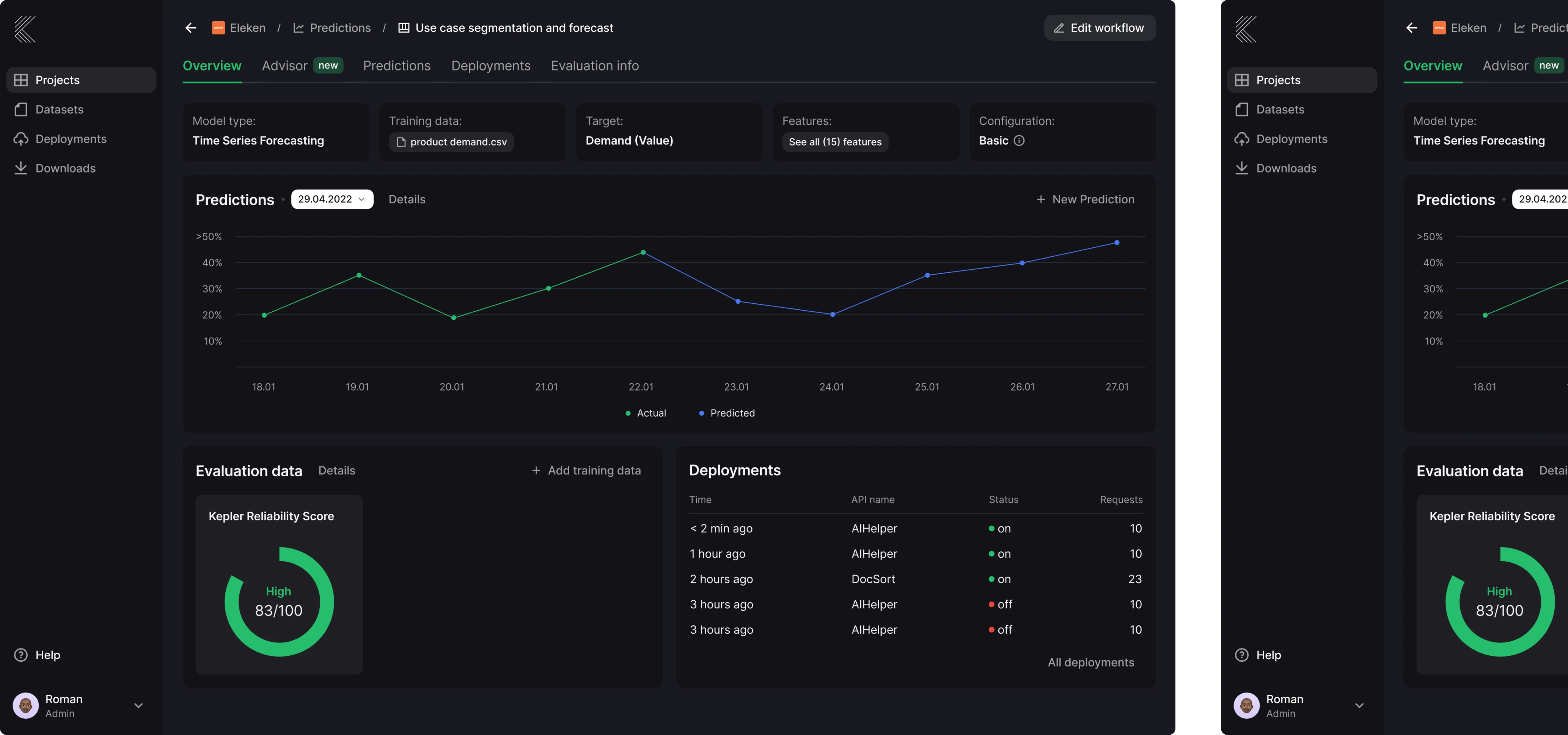 As a result, we noticed that most existing solutions had complex interfaces, which proved that a simple user flow is important for Kepler and can become its competitive advantage. As well, the competitive analysis allowed us to define the main steps in creating ML models, common for similar types of software.
