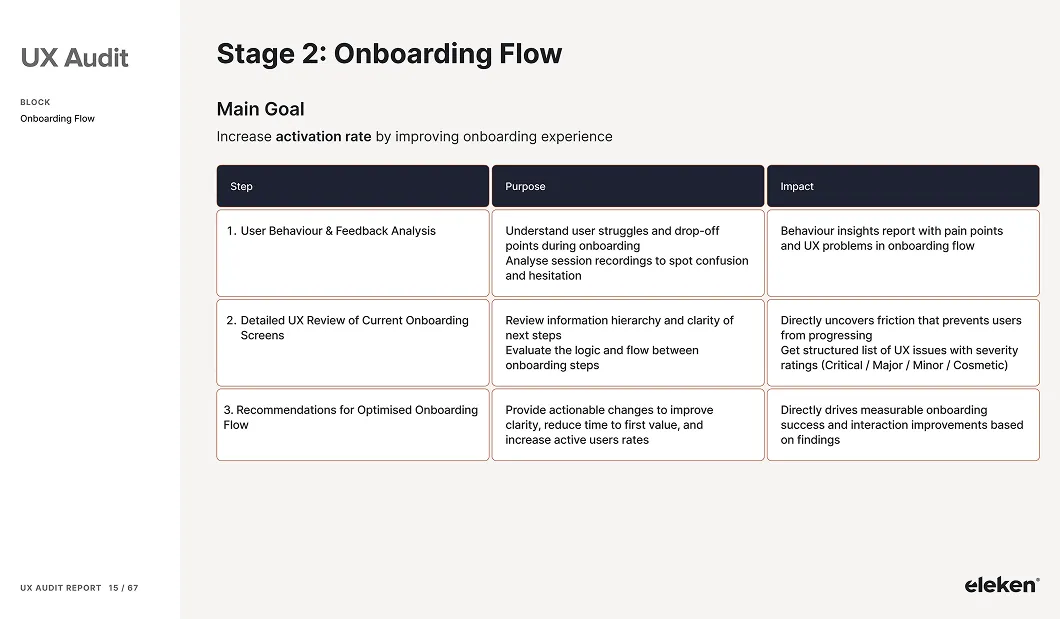 At Eleken, UX audits aren’t sold as one-off services. They’re included as the first step of your redesign project — at no extra cost.